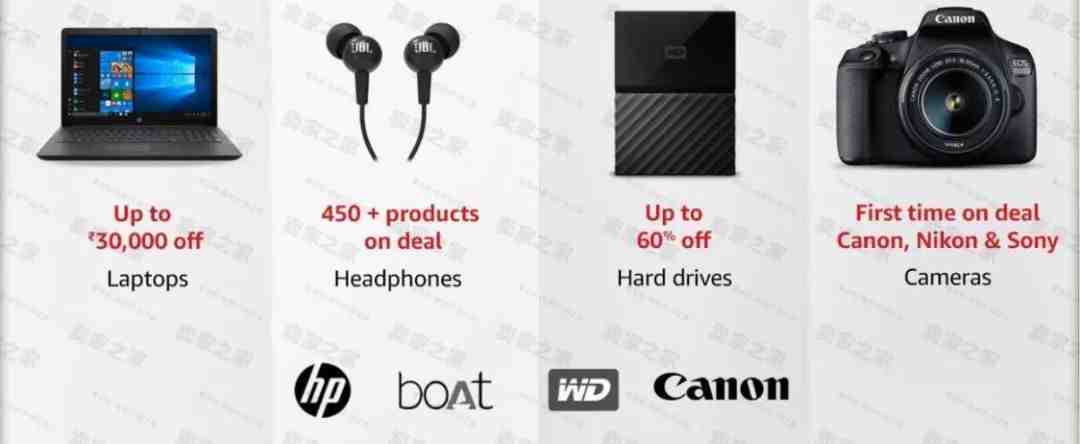 不仅如此,卖家之家还获悉,据亚马逊称,笔记本电脑、耳机、相机、硬盘等电子产品将提供高达60%的折扣。惠普,BOAT,WD和佳能等主要品牌将在此次促销中提供优惠。