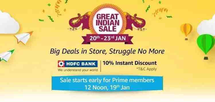 亚马逊印度公司为Great India Sale活动中超过10亿卢比的产品提供免费的EMI(电子货币)支付选项。通过借记卡在EMI上,也可以获得高达10万卢比的贷款。选择信用卡和Bajaj Finserv用户将有资格获得免费的EMI选项。此外,HDFC频道借记卡/信用卡持有人可获得额外10%的即时折扣。