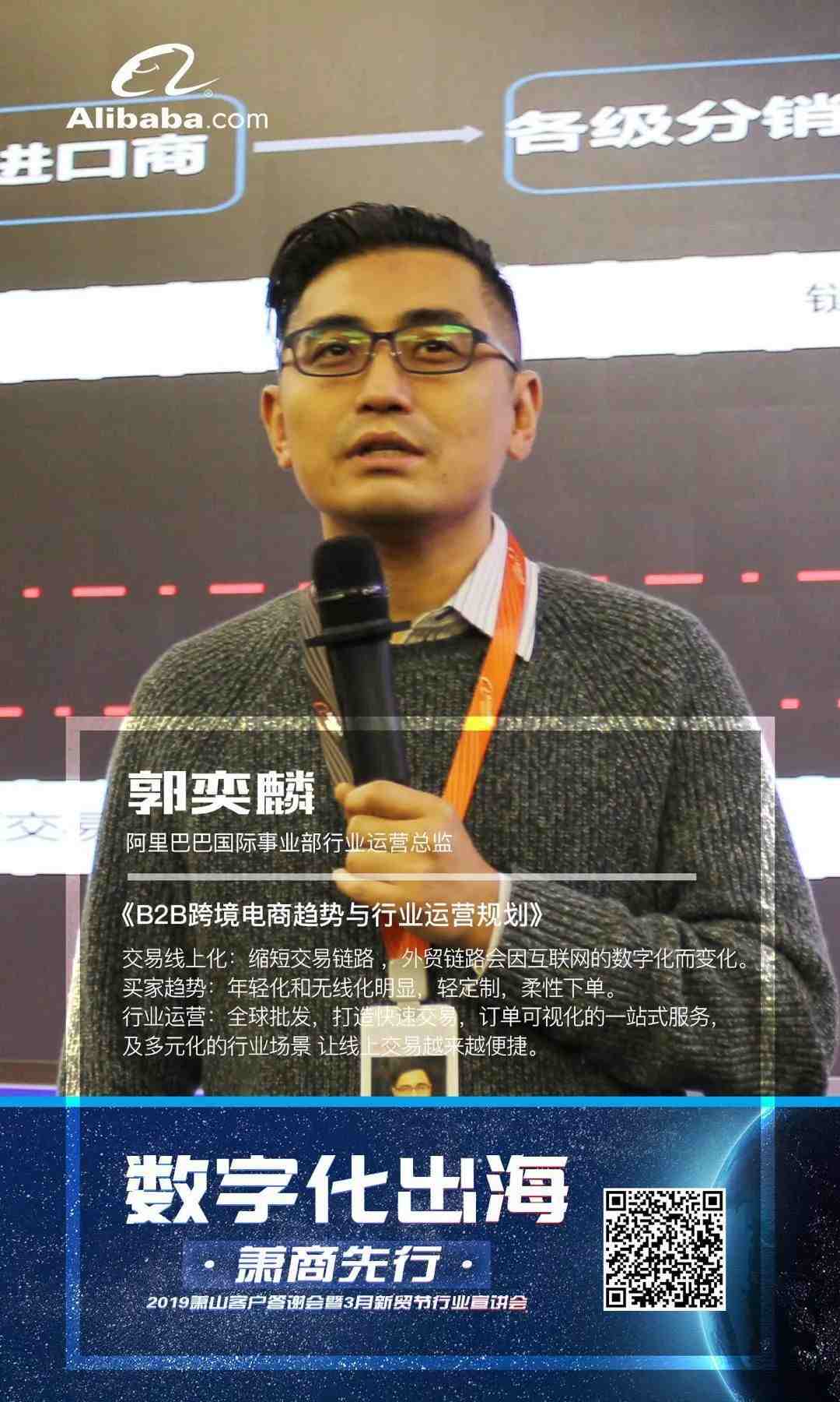 阿里巴巴国际事业部行业运营总监郭奕麟分享了关于交易线上化的干货。