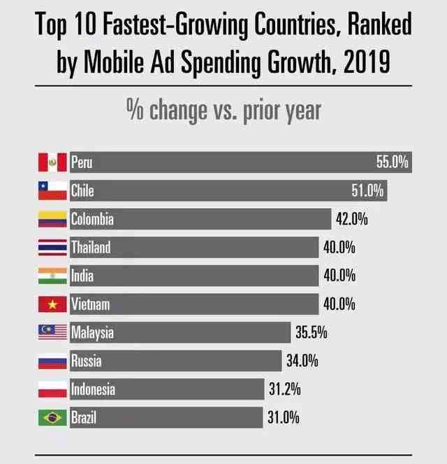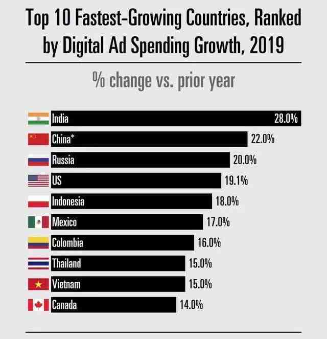 与此同时,印尼、泰国和越南同时进入了eMarketer数字广告支出发展最快的TOP 10榜单中,三个国家数字广告支出增长率分别为18%、15%和15%。