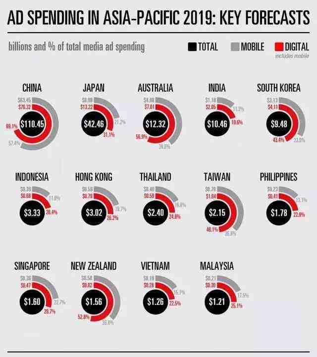eMarketer在近期出了一份2019东南亚各国媒体广告支出预测,从这些数据中,我们也许可以一窥市场前景,及时调整针对不同国家的投放策略。