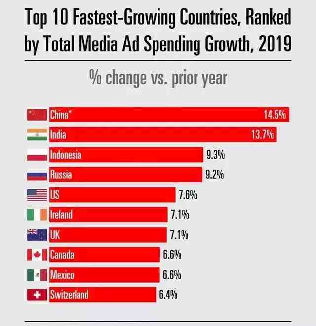 印尼是全球媒体广告支出发展最快的TOP 10国家之一,以9.3%的增长率位列榜单第三,是东南亚唯一一个入榜的国家。