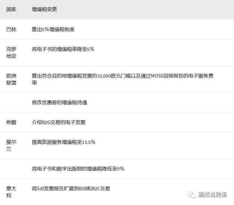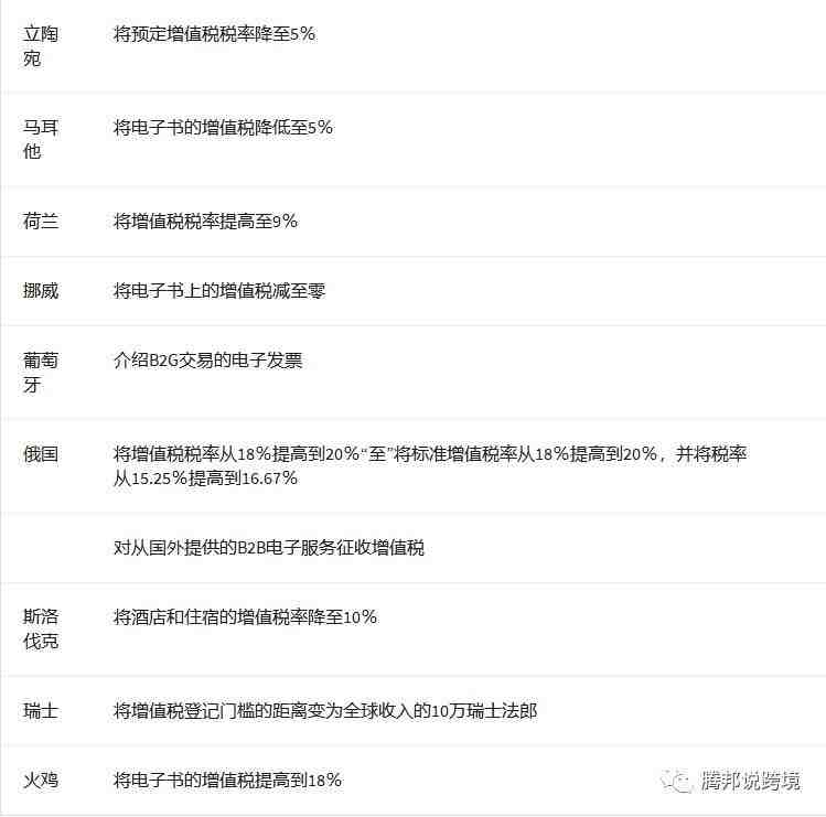 以下主要全球增值税和商品及服务税率和制度变更于2019年1月1日生效。