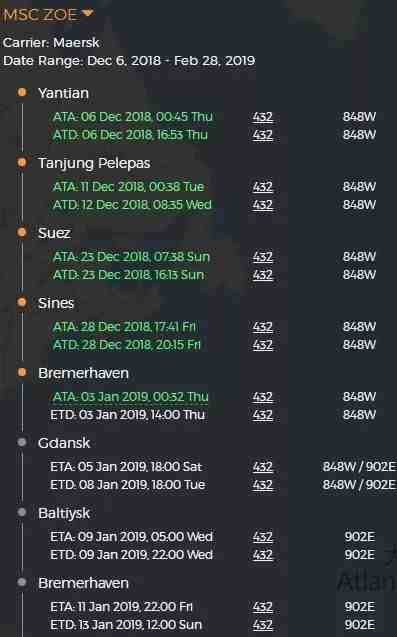 据悉,该集装箱船为佐伊号(MSC Zoe)货轮,佐伊号(MSC Zoe)货轮其主要服务亚欧航线。并且挂靠我国天津港、青岛港、洋山港、宁波港、盐田港以及香港等多个港口。