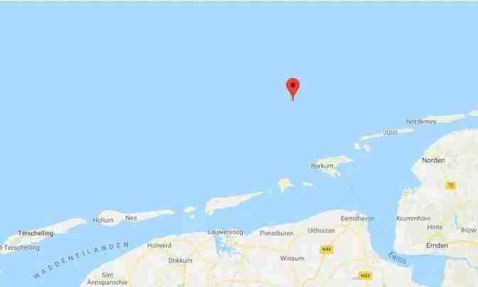 出事地点在德国的博尔库姆岛(Borkum)的北部海域,如图所示。