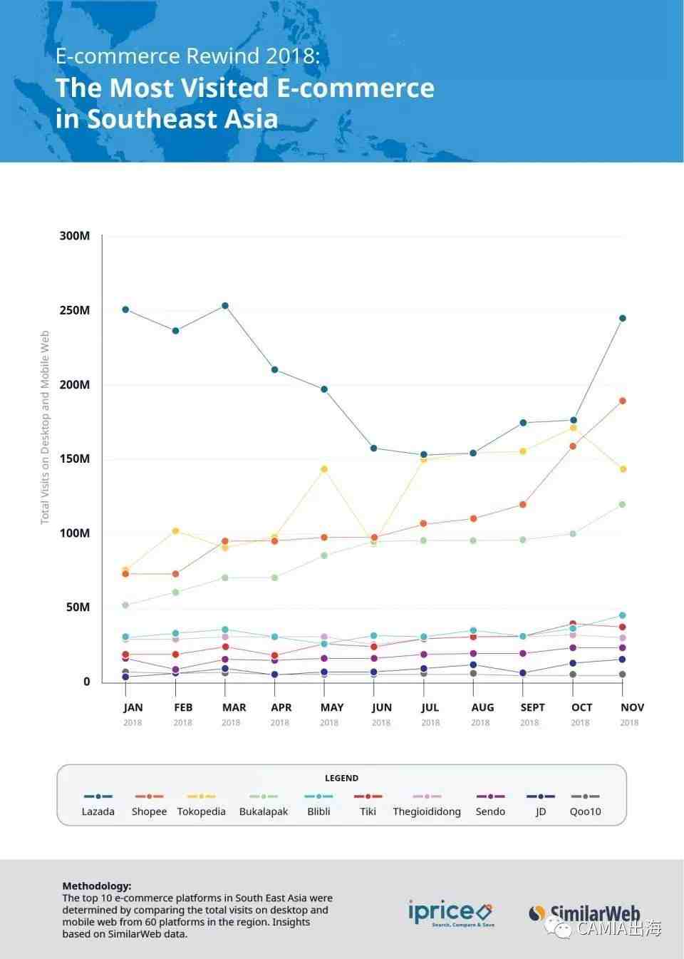 为了了解东南亚电商2018年线上活跃程度,近期东南亚电商聚合平台iprice统计了2018年东南亚60个电商年访问量情况,并呈现TOP电商流量数据。具体如下: