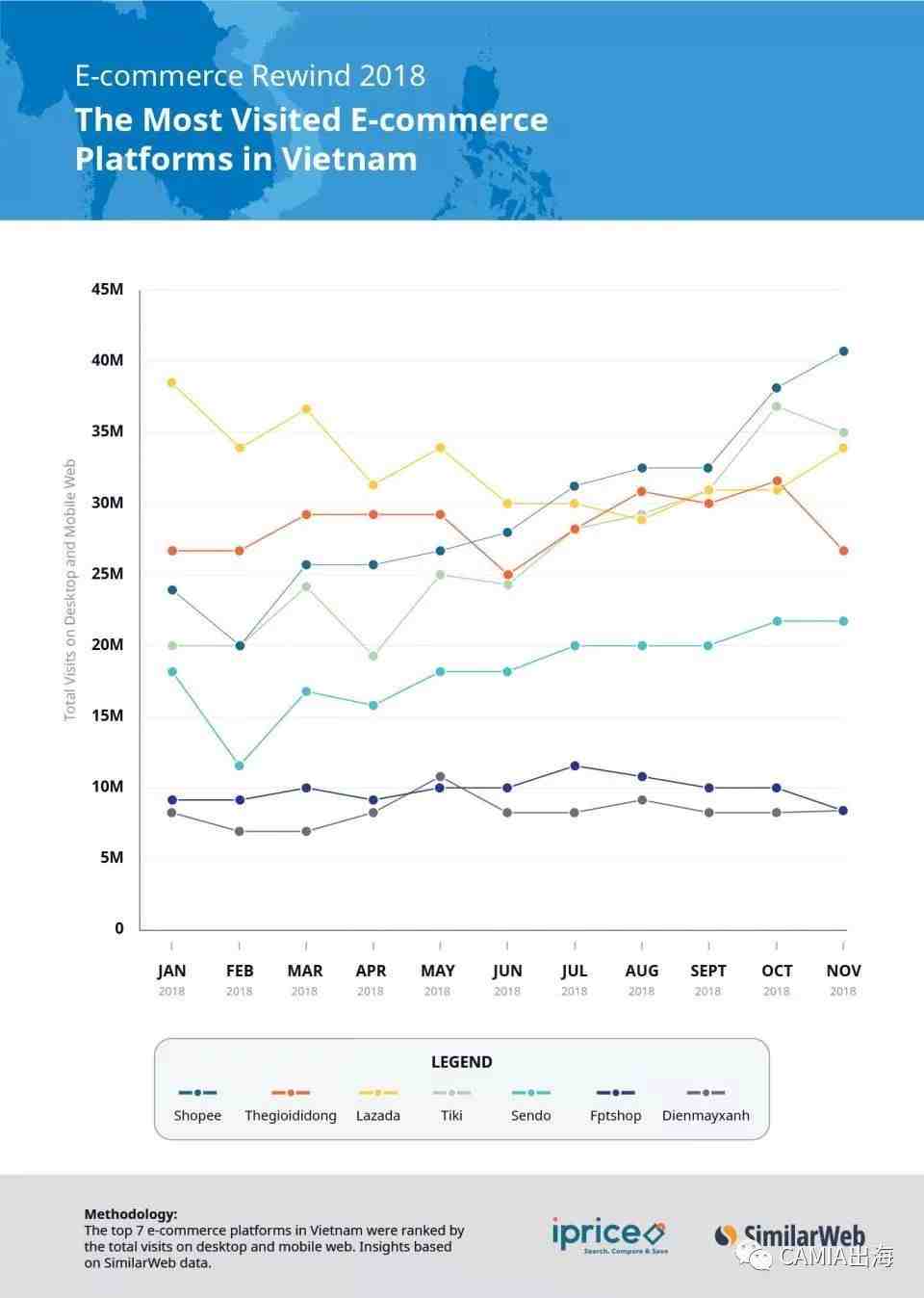 在越南,获得最高访问量的电商属Shopee。而仅仅在越南本土运行的Thegioididong和Tiki也获得了较良好的成绩。