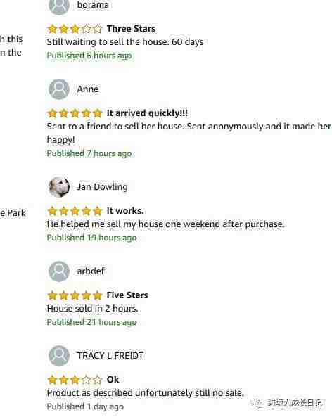 很多Review写着因为祈祷将房子卖出去了;如图: