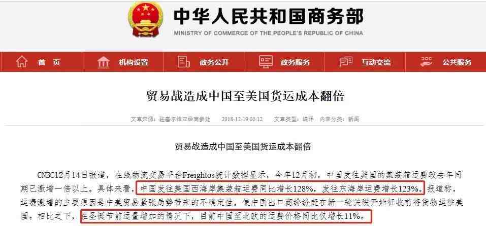 ▲贸易战造成中国至美国货运成本翻倍