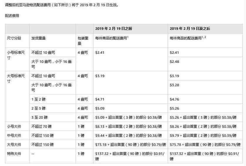 发货重量不超过10盎司的小号标准尺寸和大号标准尺寸商品的配送费用将保持不变。但亚马逊将对其他尺寸分段中的商品小幅提高配送费用,以反映配送和运输成本变化。对于包含易燃或加压气溶胶物质的危险品和含锂离子电池的危险品,将实施单独的配送费用。