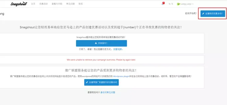 1.需要注册一个snagshout 账号,一般用99美金每月,可以推广5款产品
