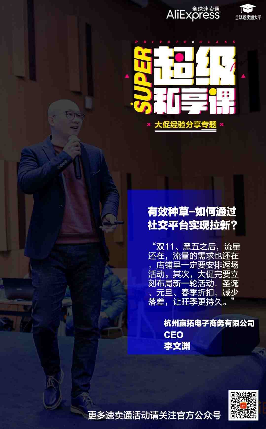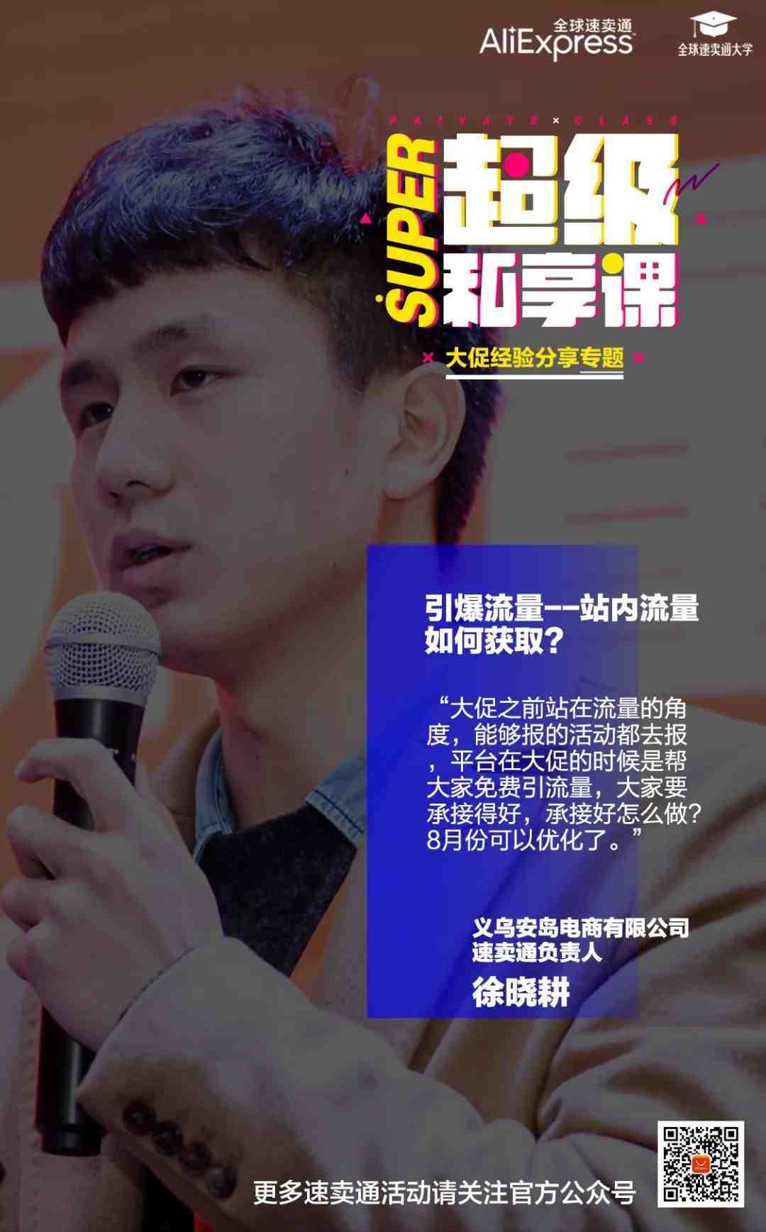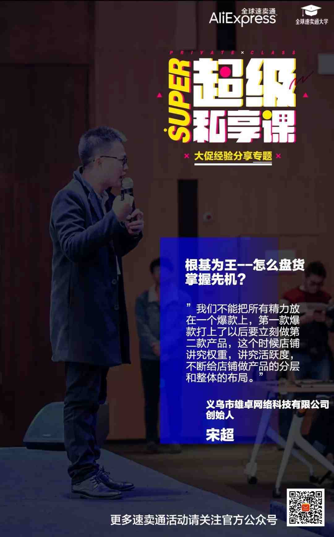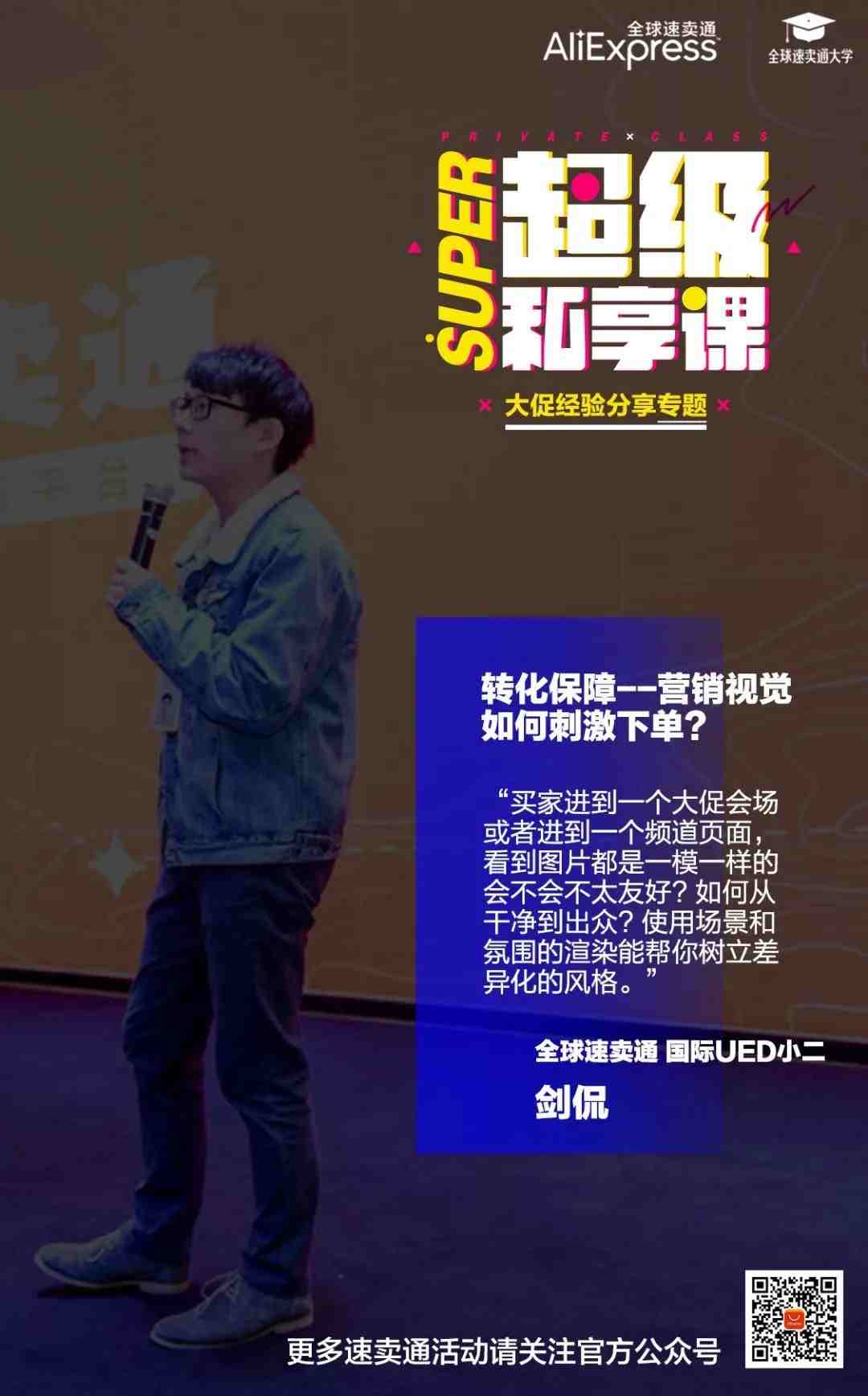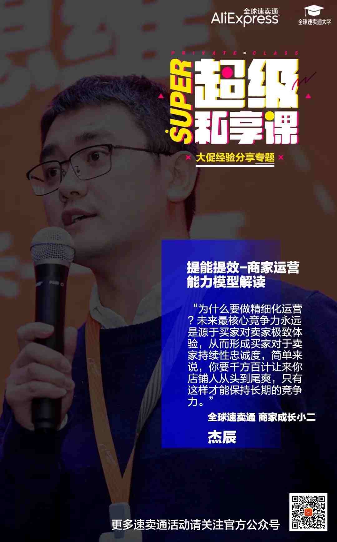 各位尊敬同学们大家下午好。首先自我介绍一下。我是来自于全球速卖通,商家成长团队的杰辰,同时速卖通大学目前也是在我在负责。包括今天超级私享会,核心也是希望给全国的速卖通卖家提供更多本地化的,低成本的,相对高效率的超级干货的这种分享场景。我们对这个项目的定义就是超级干货。