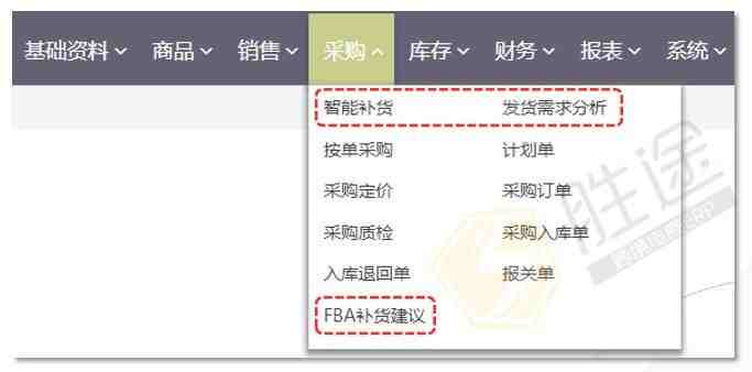 胜途跨境电商ERP在采购管理模块,设置了3项独立功能,对应满足3种主流出海模式卖家的智能补货需求: