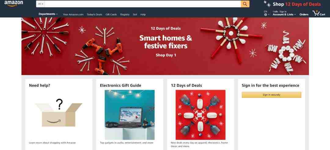 简单的案例:亚马逊在其网站上增加了雪花、圣诞红等元素,营造出一种节日氛围。