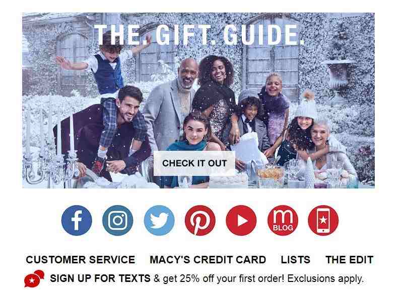 简单的案例:梅西百货(Macy 's)展示了他们对礼品选择有多复杂的理解,他们通过在电子邮件中附上礼品指南来为客户提供帮助。