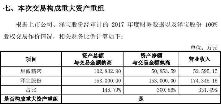 这是一笔比较有意思的买卖,资产总额、资产净额、营业收入等相关财务比例如下: