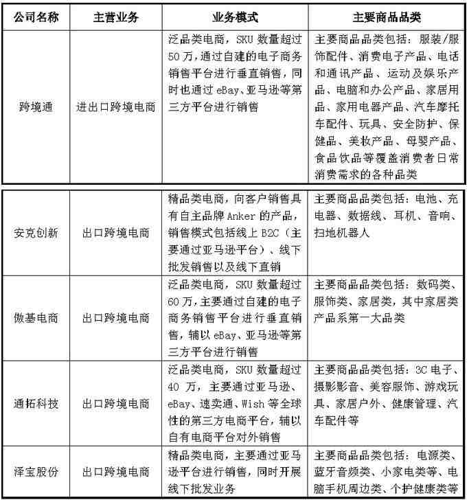 当前,出口跨境电商市场行业集中度较低,企业规模偏小,尚未有细分行业的龙头企业出现,但已逐渐形成一批较为知名的企业,包括跨境通(002640)、安克创新(839473,已终止挂牌)、傲基电商(834206)、通拓科技(601113,已通过并购重组实现上市)等。
