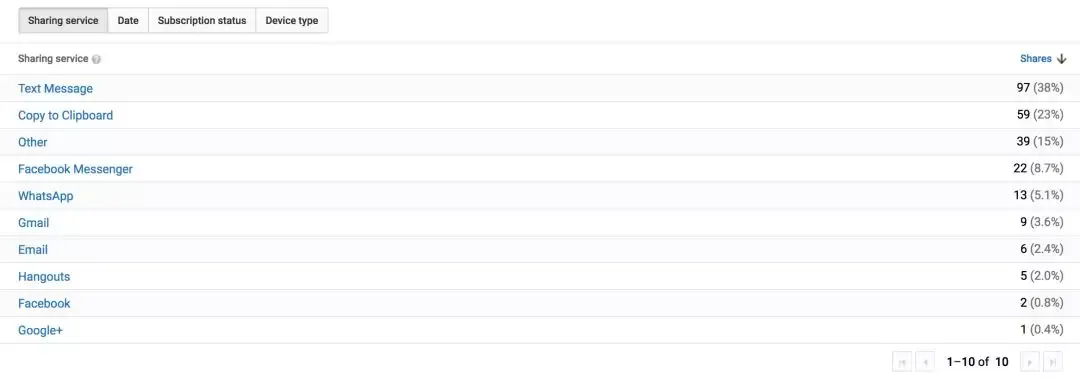 点击 YouTube 算法控制面板的分享页面,我们可以看见来自不同平台的分享情况,如社交网络和社交工具等等。