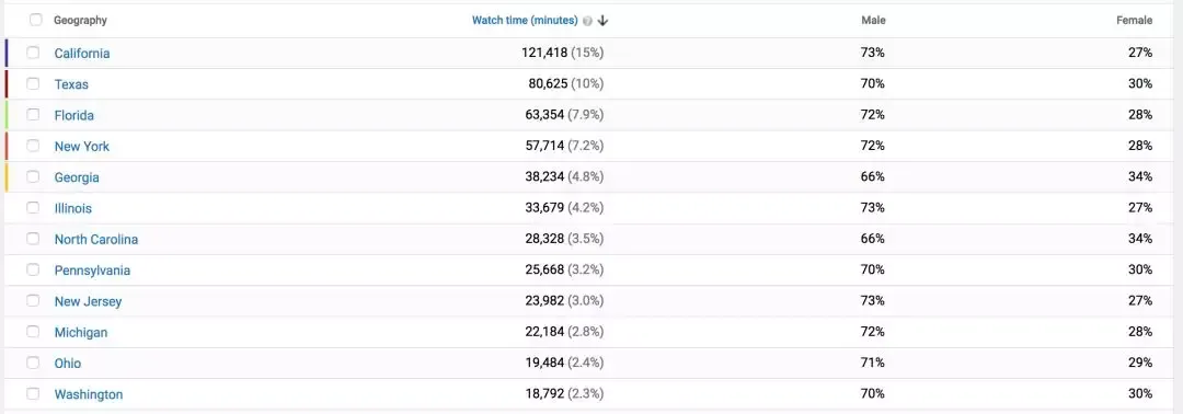 从这些数据中你可以知道,视频在哪里是最受欢迎的,以便根据实际情况对 YouTube 视频渠道进行优化。