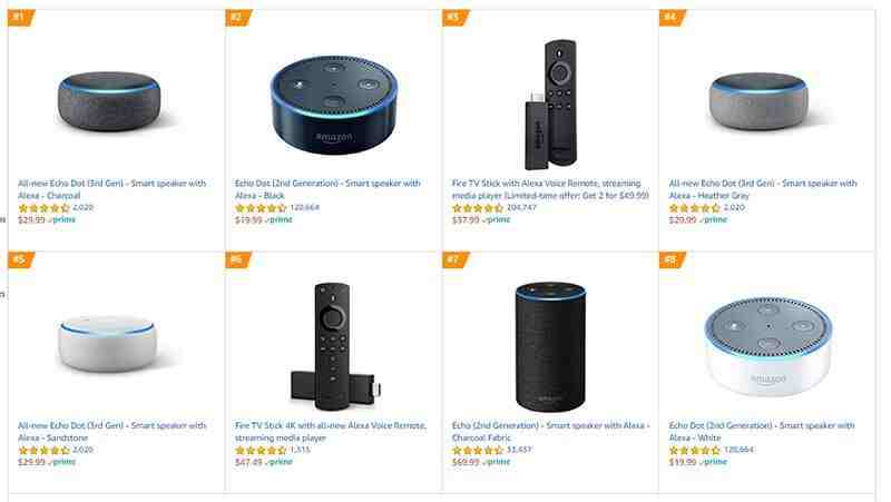啊,看得出来,亚马逊是想步苹果的后尘了。畅销产品的前22位都被亚马逊自己的产品占据,而排头兵则是Echo系列产品。