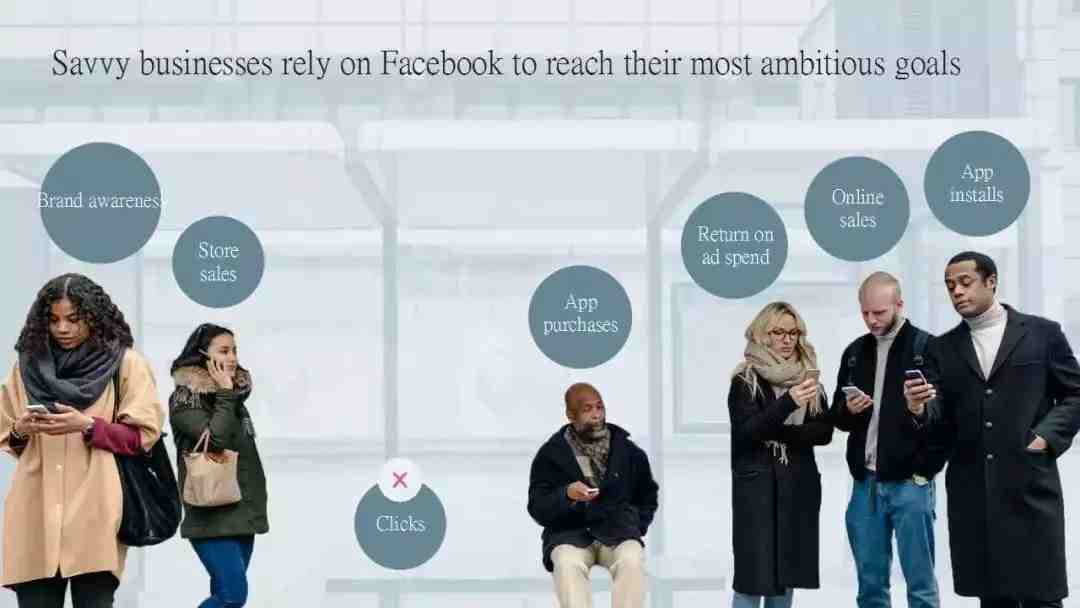 无论你的业务目标是什么,你都可以通过 Facebook 系列应用和服务来实现,包括品牌知名度、商店销售、应用购买、广告支出回报、在线销售以及应用安装。