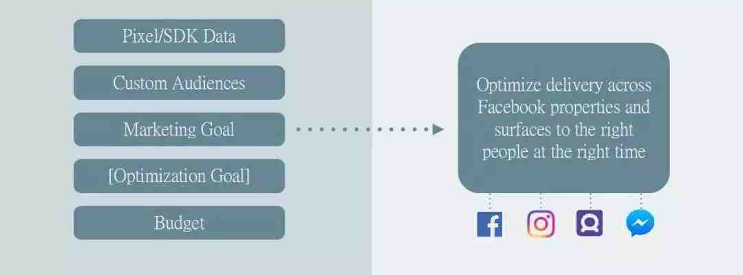 机器学习模型回答了这样一个问题:哪些受众最有可能采取这种期望的行动? 它结合了 Facebook 平台的数据和信号,以及你分享的见解,以便根据广告组或广告系列目标对所需操作进行预测。