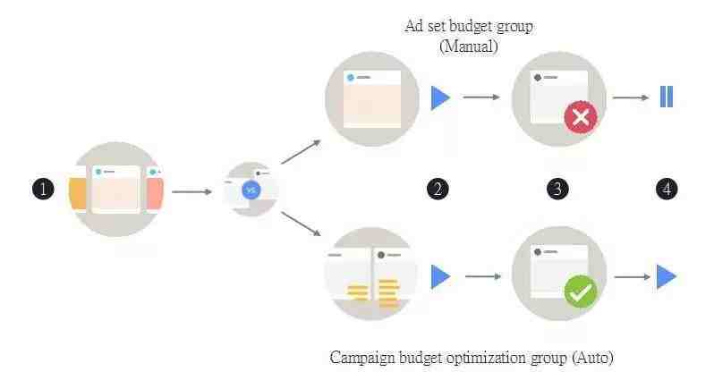 虽然最终的广告预算内会集中到其中一个广告组上,但自动预算优化的优势在于包含 2 个或更多广告组的广告系列。如果你刚开始使用广告系列预算优化,Facebook 建议选择 1 个广告系列策略,例如:获取、重新定位、探索、提高品牌意识等。每个广告系列的当前广告设置上限为 70;但是,如果你刚开始使用,Facebook 则建议从 5 个或更少的广告组开始。