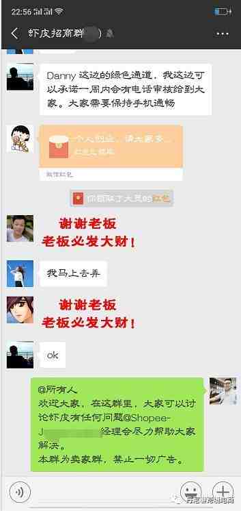 我们建立了一个活跃这群,里面对接了开店必备的资源,而且都是卖家,可以一起商讨运营中面临的问题,招商经理也在群里随时可以解答虾皮的相关问题。要进群的朋友加我微信,备注虾皮,否则不通过。