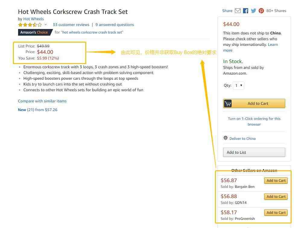 如果我们在各种亚马逊参数或者说亚马逊指标上面拥有漂亮的数据,那么我们就能够赢得亚马逊Buy Box,并且无需将产品价格调至同类产品中最低。这样一来,我们能够获得丰厚的利润同时也不会丢失Buy Box。