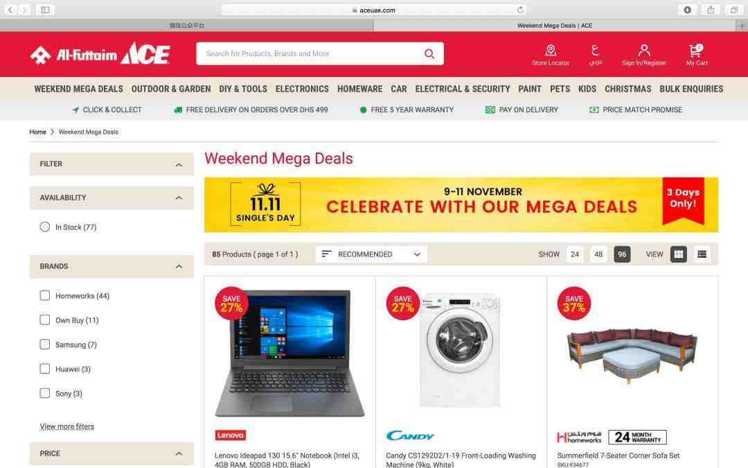 今年的双十一落在了周末,同中东最大电商促销节白色星期五(11月21号开始)仅相隔一周。Google和社交媒体,各大主流电商首页上出现了双十一促销页面,2018年,中东电商第一次引入双十一。