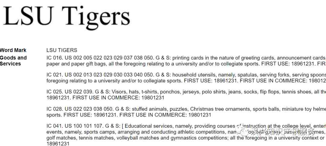原告品牌:路易斯安那州立大学老虎队 LSU Tigers