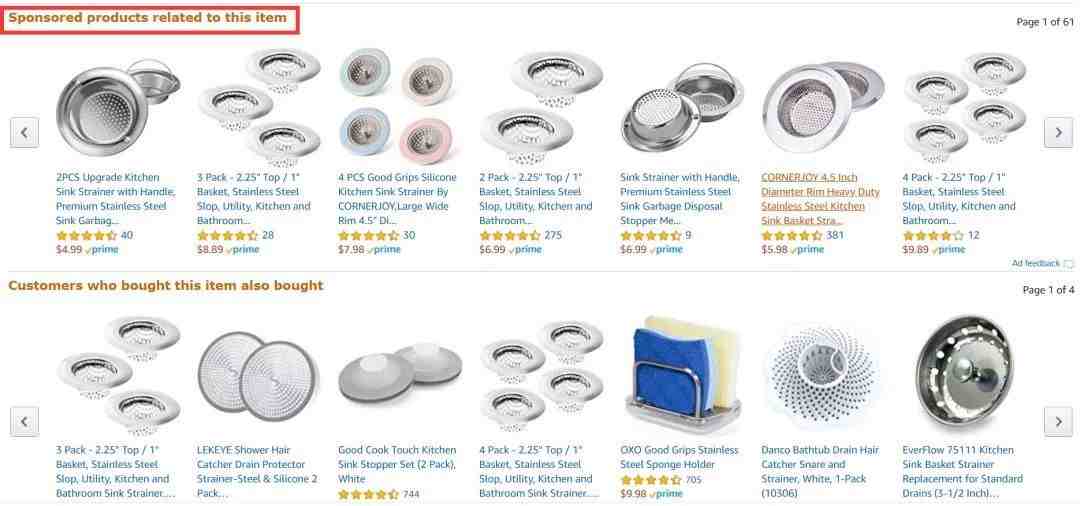 对于投放站内广告的Listing,亚马逊系统往往会将其展示在搜索结果页和相关的产品详情页中间位置,而对于投放了自动型广告的Listing,当其出现在某个产品详情页面并被消费者点击时,系统则会以原详情页的Listing ASIN码做记录,这也就是广告数据报表中出现ASIN码的原因。