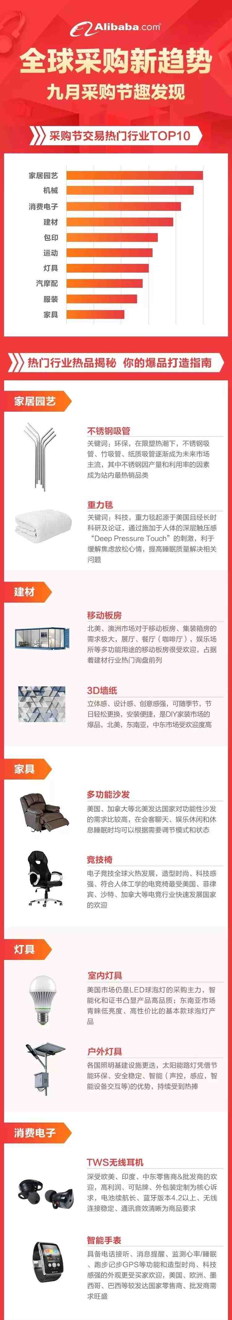 因此,对九月采购节期间的在线交易数据进行复盘,得出采购节交易热门行业Top10,以及热门行业里最热门的爆款产品。