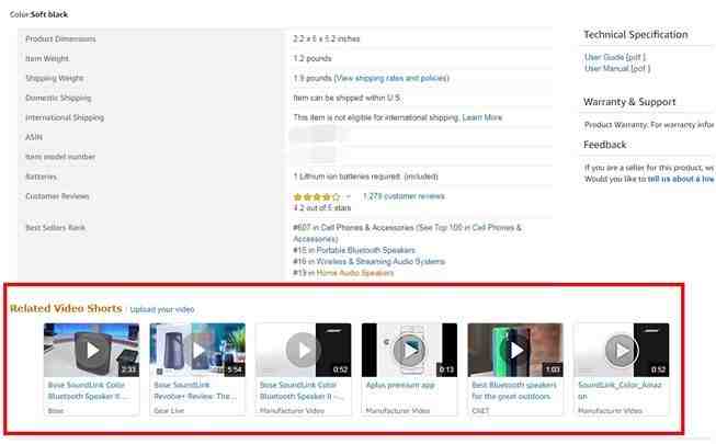 最终该Listing下面所有的相关的视频,比如主副图的视频,买家评论中的视频,都会集合在页面的Related Video Shorts模块下: