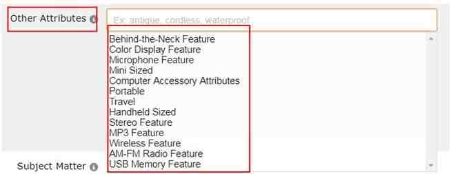 Other Attributes:完善所有产品信息