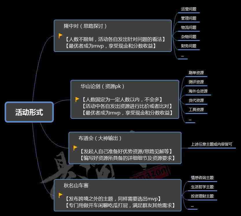 雅集,即古代文人墨客们相聚在一起,吟诗作对,讨论学术的聚会。悬赏令发起的雅集则是效仿古人,将各位有兴趣的卖家朋友们聚合在一起,交流学习关于跨境(或其他)的各类问题。每次活动将围绕一个主题展开探讨,相互交流,彼此切磋。雅集分为以下几种活动形式: