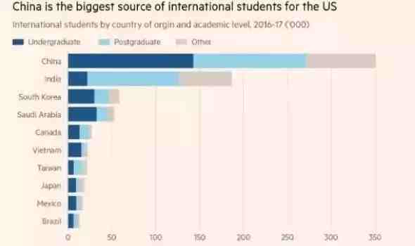 国际教育学院(Institute of International Education,简称IIE)的数据显示,在2016- 2017学年,中国是美国最大的留学生来源国。