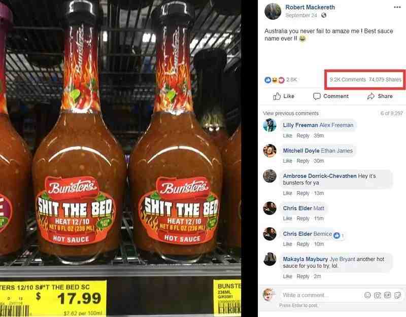 本来,Robert分享这款辣酱的名字是为了给朋友们找点乐子,没想到,一个星期后,这个帖子莫名其妙地就火爆了。截至今天上午,帖子已经被分享了74087次,吸引了9297条评论。