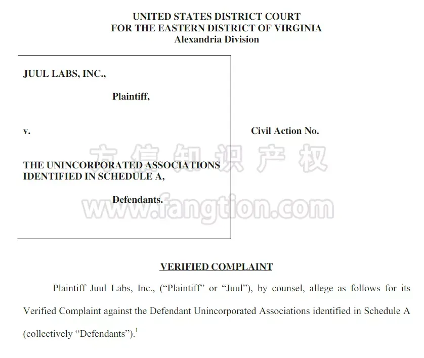 网红产品自然是不乏“追随者”的,JUUL以其独特的设计走红,商机无限,不少跨境电商卖家也开始纷纷模仿,山寨产品层出不穷。在今年的8月24号,JUUL向美国地方法院提起了商标侵权诉讼,被告包含了一大批中国卖家,主要是eBay平台卖家居多。案件编号是1:2018cv01063。 起诉的原因是商标侵权,销售冒牌JUUL产品。