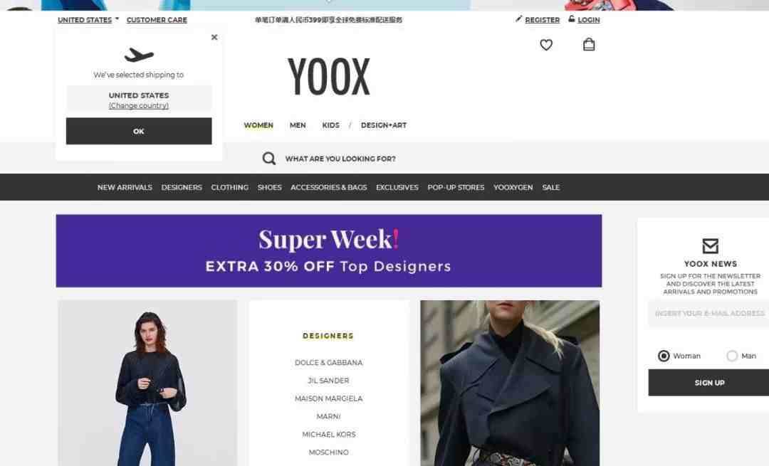 Yoox创立于2000年,创始人为Federico Marchetti,主打时尚类目产品。
