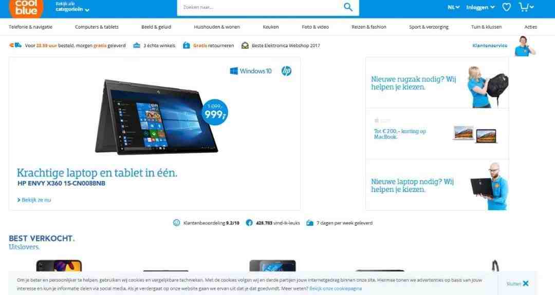 Coolblue创立于2000年,其在荷兰年在线收入约为8.84亿欧元。创立之初,其只有一个简单的在线商店mp3man.nl(后来成为mp3shop.nl)。首次推出后不久,这家总部位于鹿特丹的公司开始开设更多专注于一个产品类别的在线商店(垂直电商平台),如PDAshop.nl,Scheerapparaatshop.nl和Statiefshop.nl。