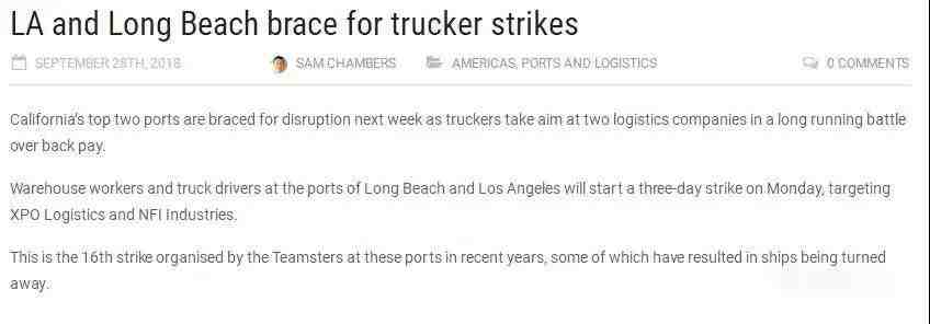 中美贸易站“激战正酣时”,美国人民又搞了点出事出来(我们要放假了,他们又开始闹腾了),之前就有罢工,现在又有一波罢工行动来袭,(真TMD不让人省心),现在出货到洛杉矶和长滩港的外贸和货代人可得注意了!(搞得大家这个国庆小长假都没法安心)