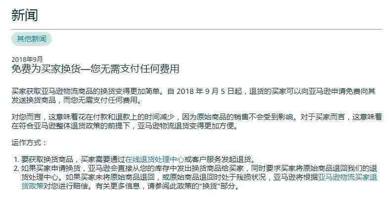 从上图我们可以知道,这是亚马逊针对买家推出的一项新的服务。也就是从2018年9月5日起,在原始产品不会影响销售的情况下,退货的买家可以向亚马逊申请免费向其发送换货商品,买家无需支付任何费用。
