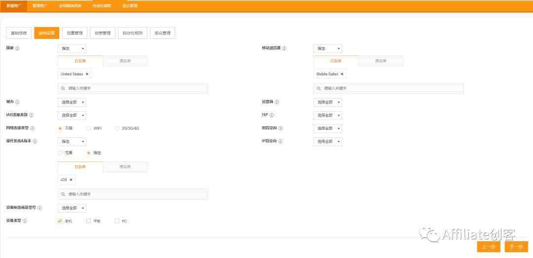 定向设置方面跟你在一般的流量平台上设置没有什么差别,比较友好的是可以有多个优化选项,比如你可以指定系统版本等。