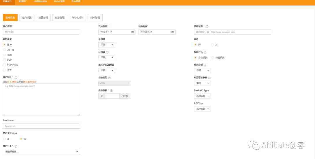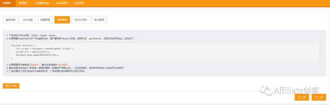 创意管理是根据你选择不同的素材类型设置的,我这里选的是JS Tag类型,所以需要一个Tag去包含广告内容。