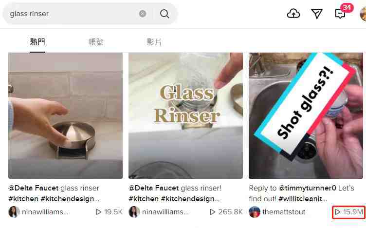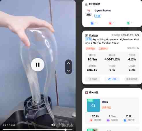 搜索关键词“Glass rinser”中发现一一位名叫@Great homes 的账号发布的视频,