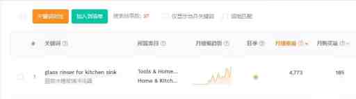 产品对应的“Glass rinser”关键词处于上升趋势,