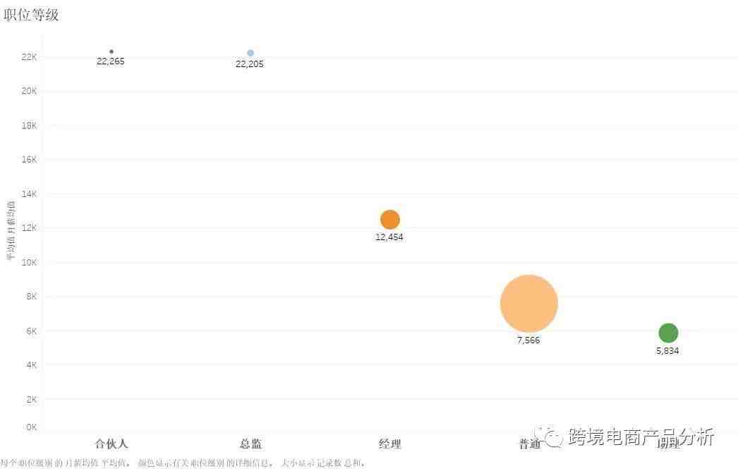 如图可以看出,对普通无级别的需求最多,且明显高于其它职位,平均月薪大概7.5K,说明行业门槛不是很高,对经验要求没有那么明显。而对经理以上级别需求一般,但薪资明显高了一个水平,薪资大概12K。合伙人和总监的月薪大概是22K。由此,可以大致看出这个行业的发展空间和上升通道。