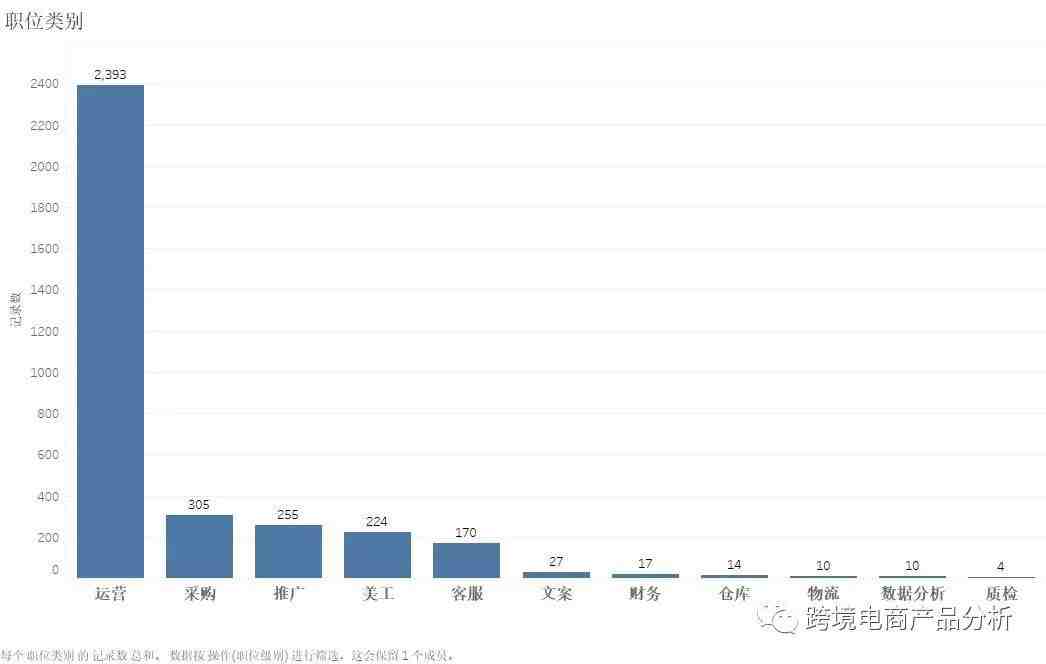 首先看,各岗位的招聘需求,可以看出招聘者对运营岗位的需求远远高于其他岗位。