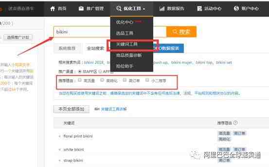 在这里我以直通车关键词工具举例,直通车后台-优化工具-关键词工具